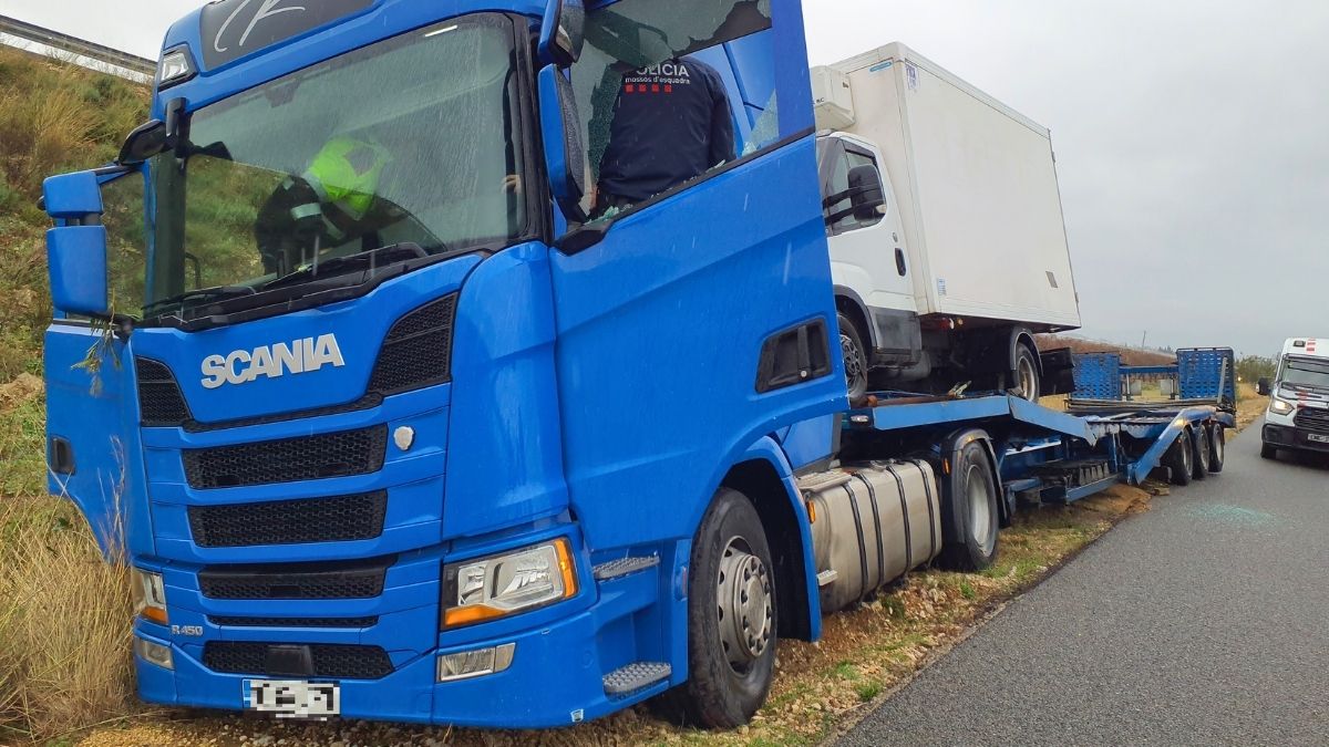Els agents van fer ús de defenses extensibles per seguretat i el camió va sortir parcialment del voral